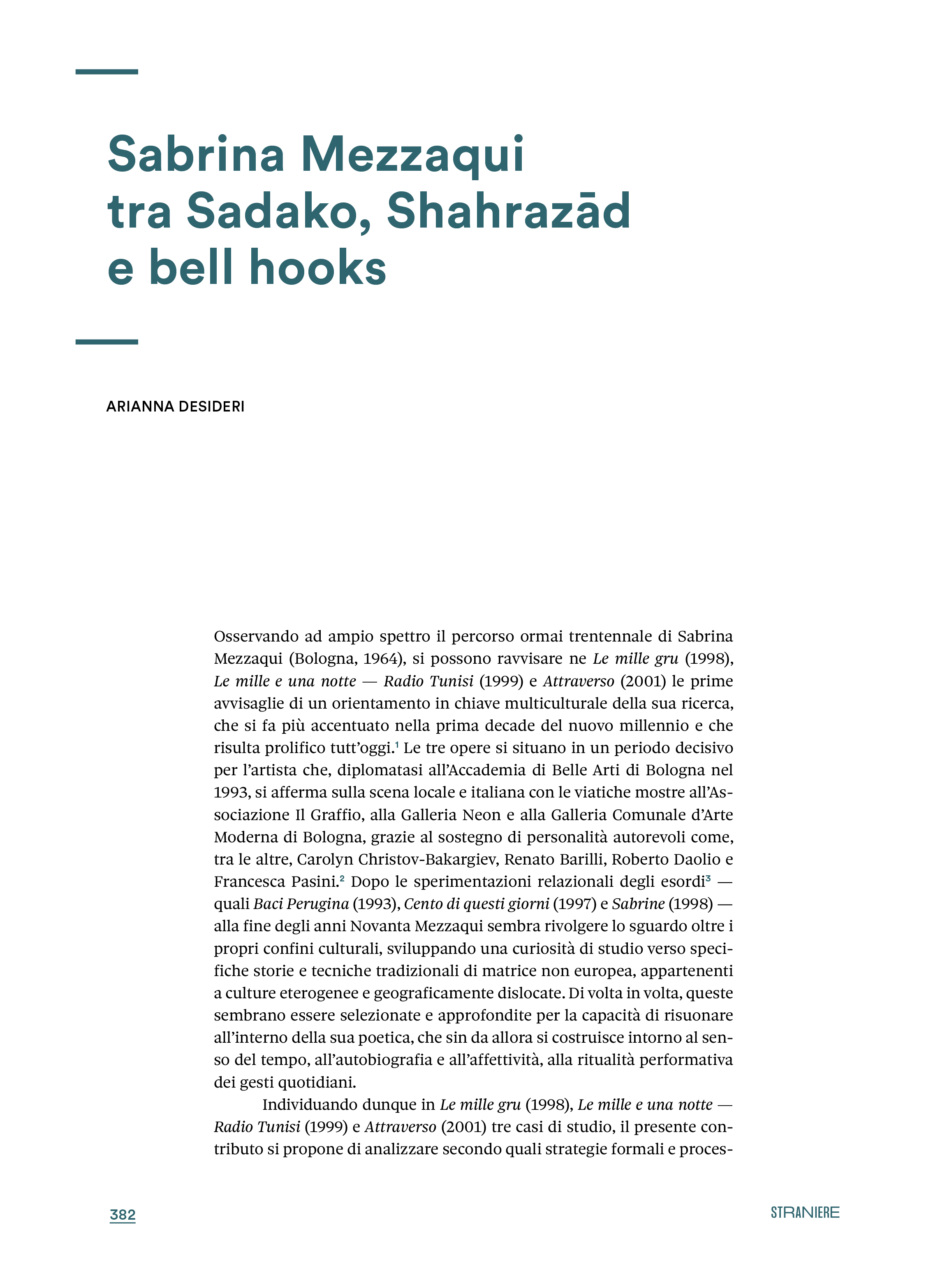 Arianna Desideri, Sabrina Mezzaqui tra Sadako, Shahrazād e bell hooks - p. 382