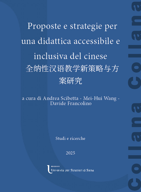 Proposte e strategie per una didattica accessibile e inclusiva del cinese 全纳性汉语教学新策略与方案研究, a cura di Andrea Scibetta, Davide Francolino, Mei-Hui Wang, Siena, Edizioni Università per Stranieri di Siena (ISBN:"Studi e ricerche"; volume pubblicato il 23/10/2025)
